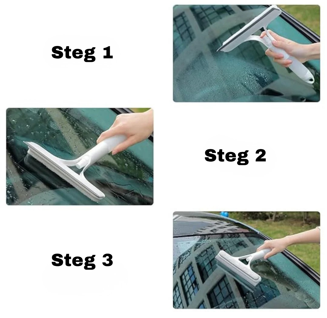 BlankPro™ är utrustad med en integrerad spraybehållare, en mjuk rengöringsborste och en silikonvisk. På så sätt kan du spraya, rengöra och torka utan att lämna ränder i en enda smidig rörelse – utan extra verktyg eller ansträngning.