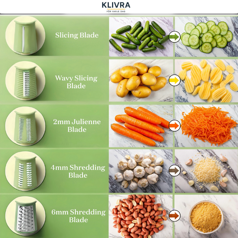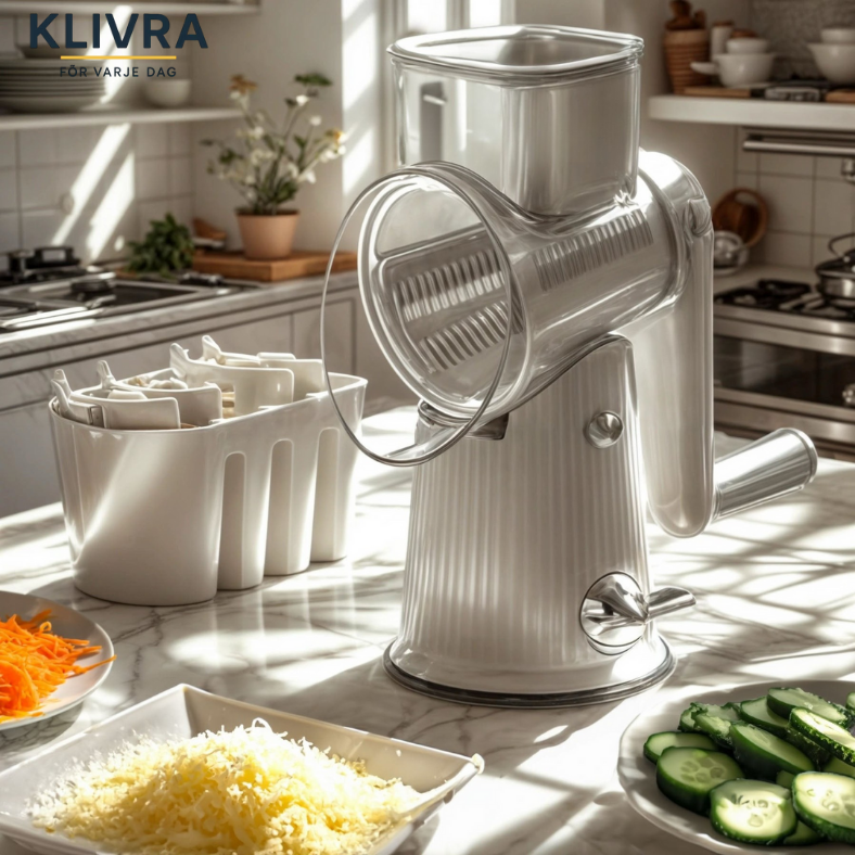 Perfekt för att enkelt skapa jämna skivor av grönsaker, frukt och ost. Idealisk för sallader, smörgåsar och garnering.