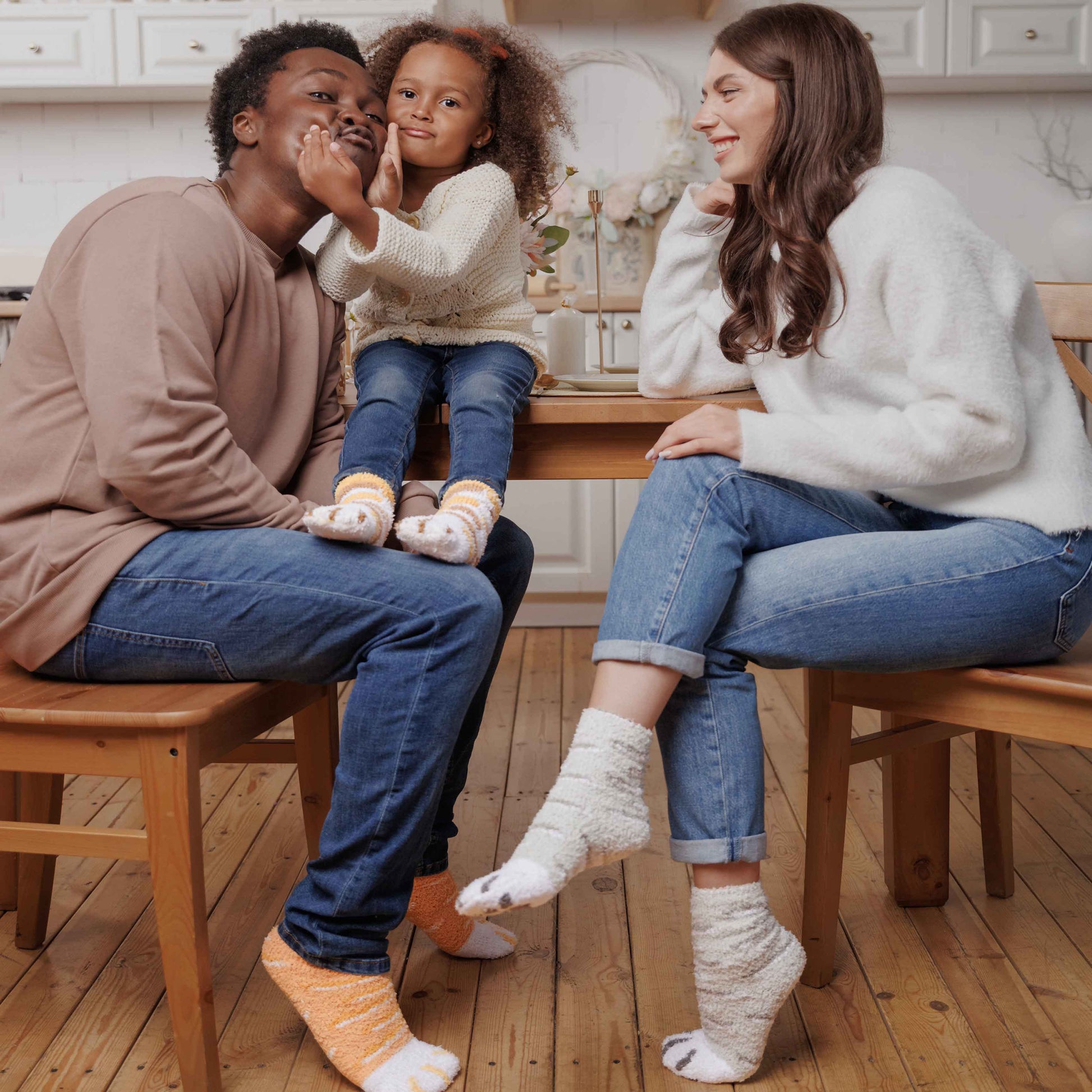 Dina små fötter håller sig varma och sköna hela vintern med våra mjuka och bekväma katttassformade sockor ⛄️