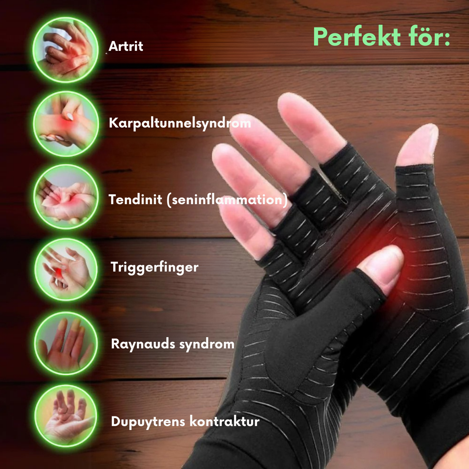 Dessa kompressionshandskar ger riktad kompression och behaglig värme som lindrar värk, förbättrar blodcirkulationen och minskar stelhet.