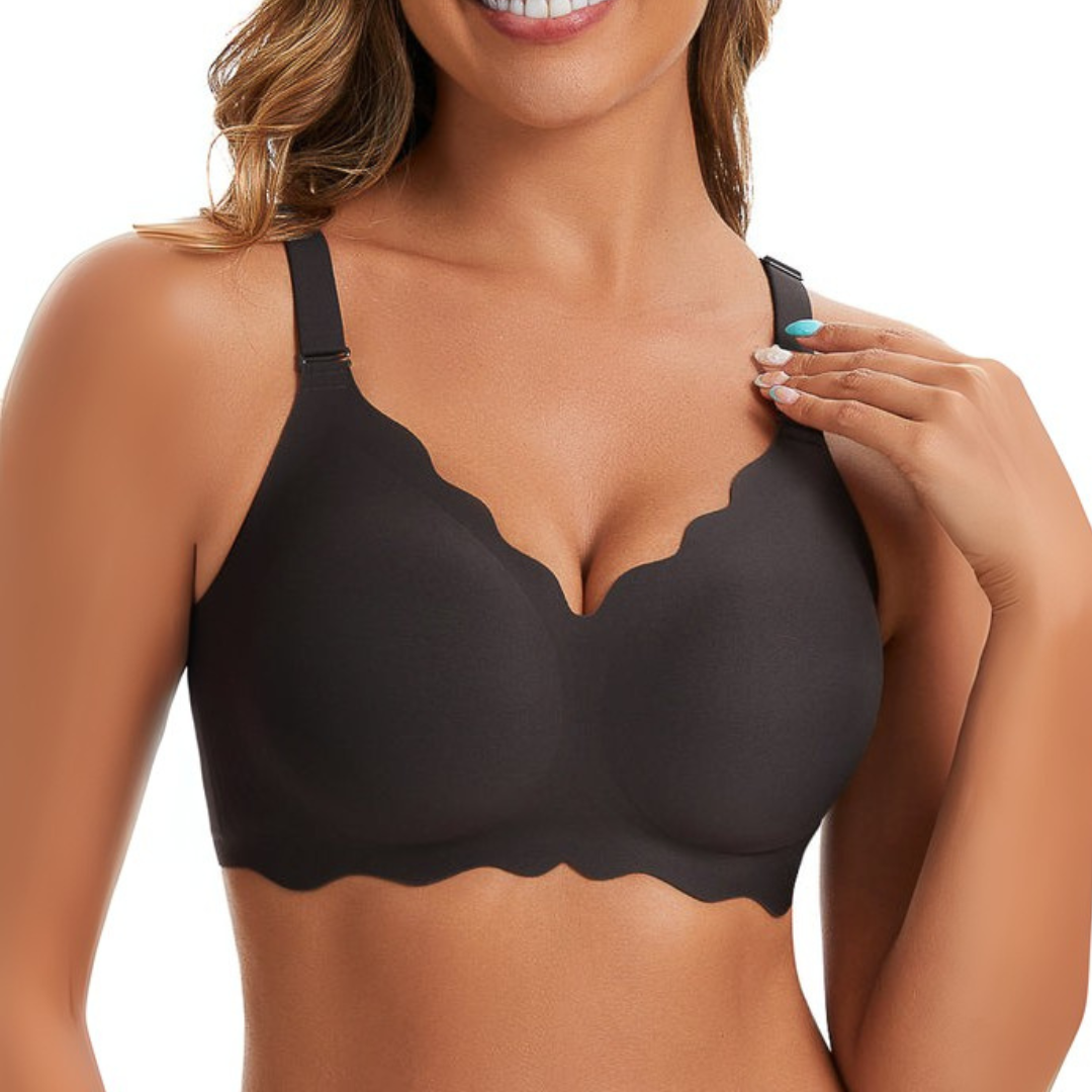 Med sin distinkta feminina vågiga V-ringning och mjuka gelremsor på sidorna och under bysten får du en behå som följer dina kurvor – utan att klämma, spänna eller lämna märken.