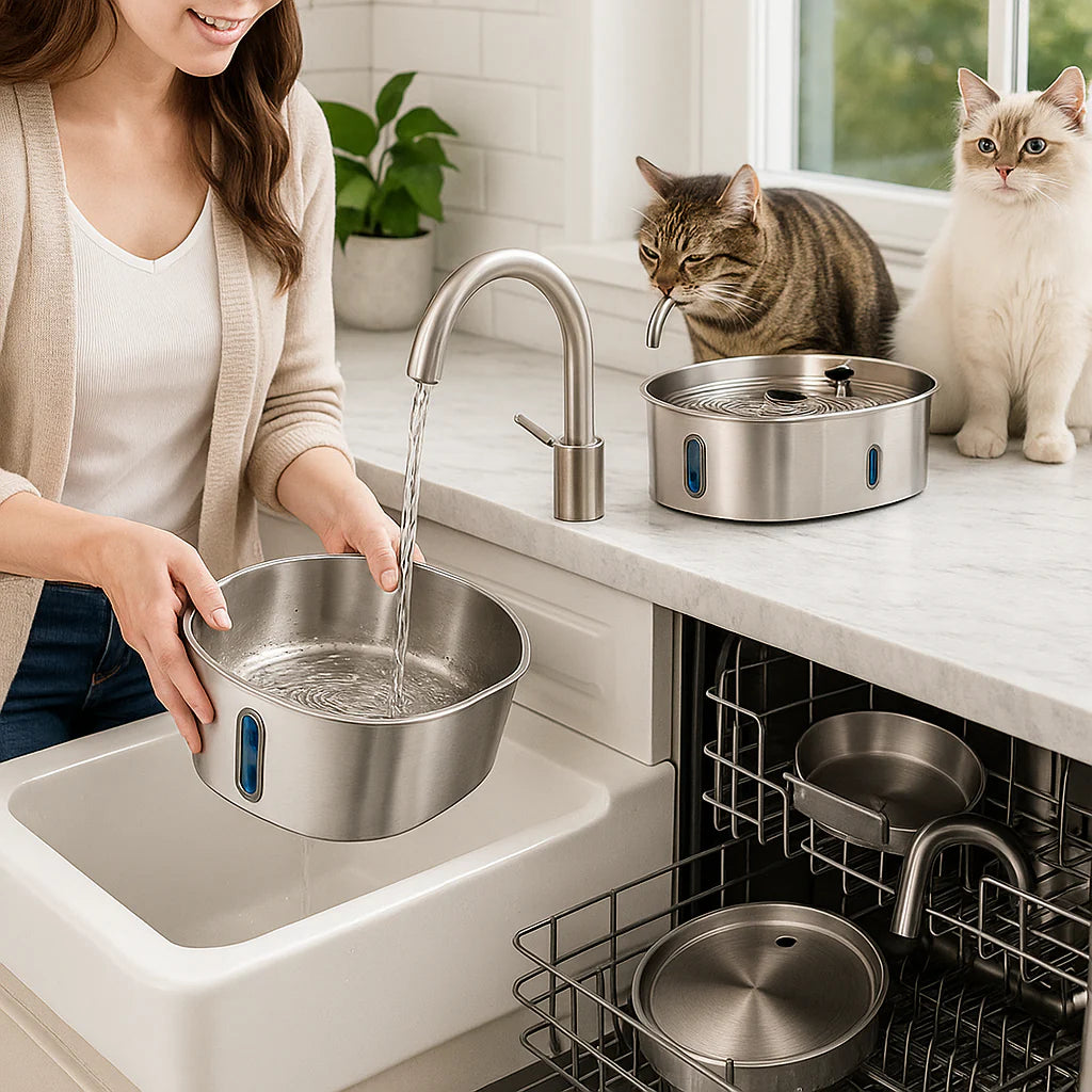 NjurFlow™ är tillverkad av 304 rostfritt stål – samma material som används i kirurgisk utrustning. Rosttåligt, reptåligt och naturligt antibakteriellt. Din katt dricker alltid från en ren vattenkälla.