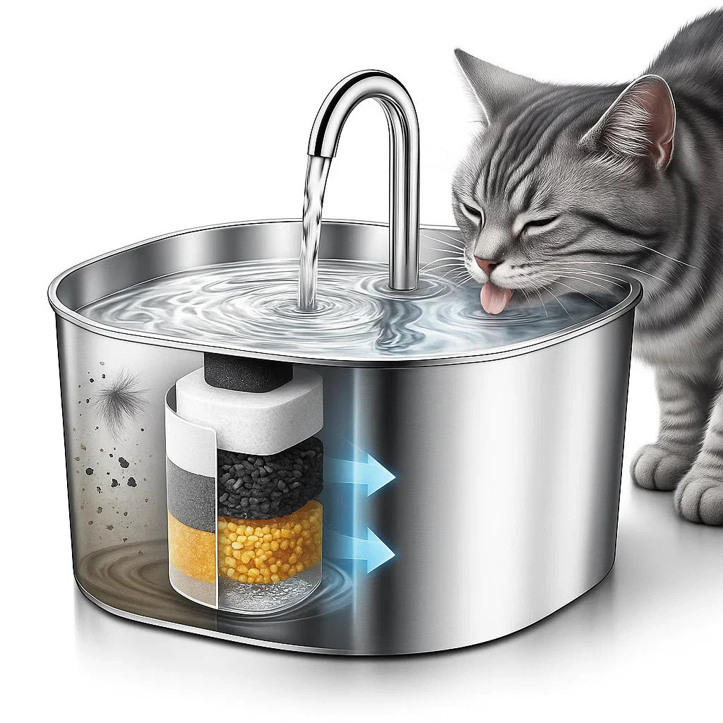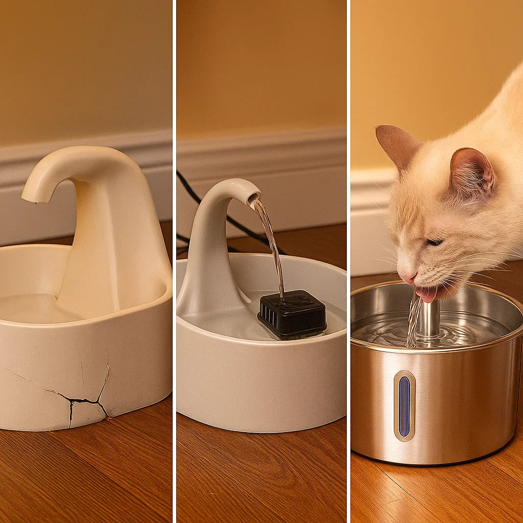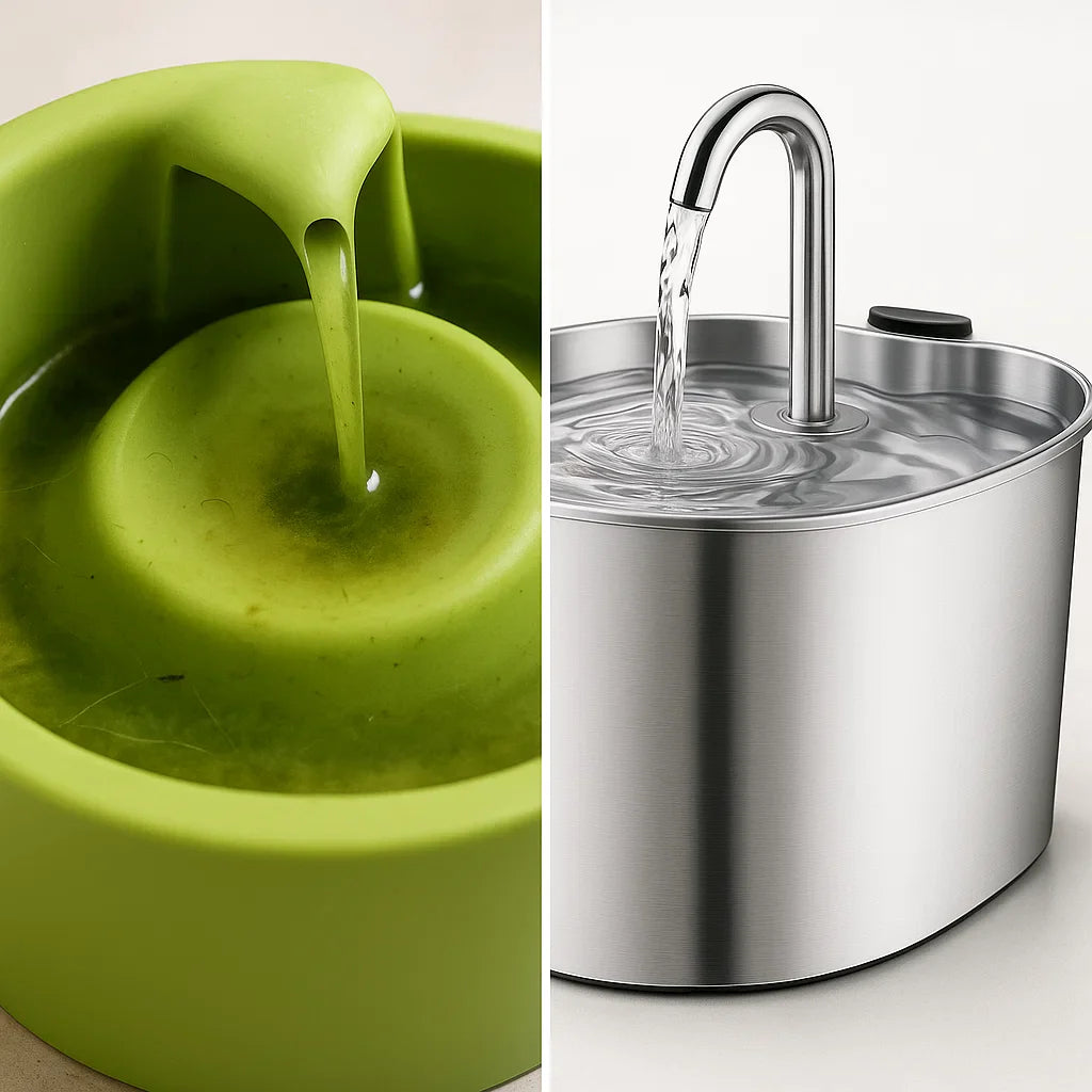 Vatten i skålar blir slemmigt efter bara några timmar på grund av biofilm, och billiga fontäner filtrerar knappt något alls.