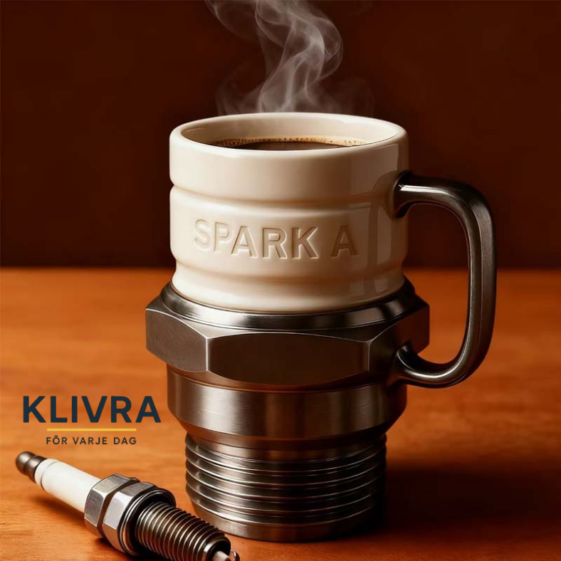 Ett samlarobjekt med attityd – Från hyllan till kaffehörnan fungerar SparkMugg™ också som dekoration som uttrycker passion för maskiner och hantverk. Ställ fram den – samtalet börjar av sig självt.