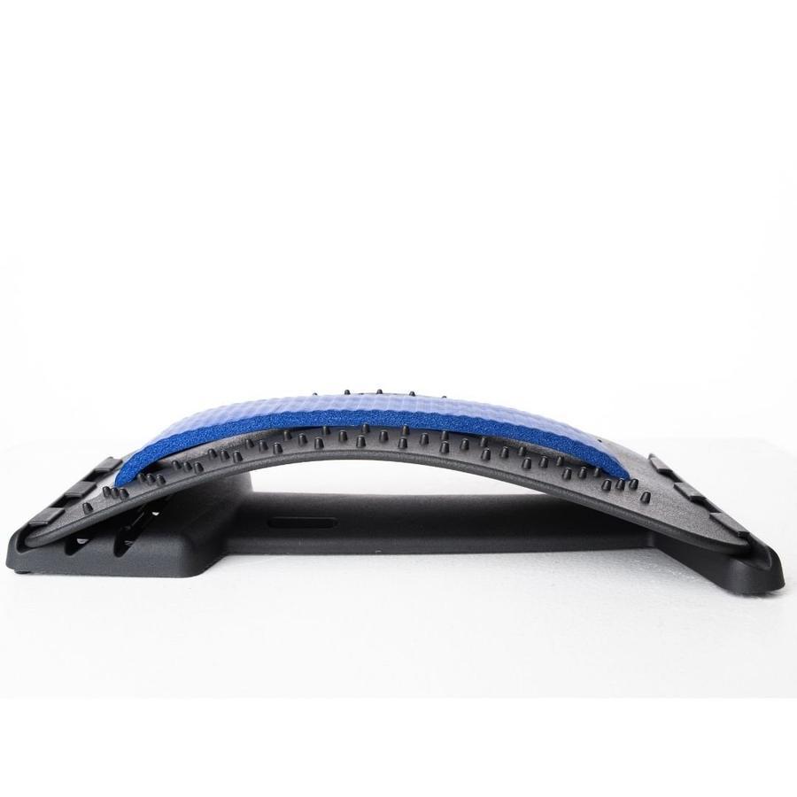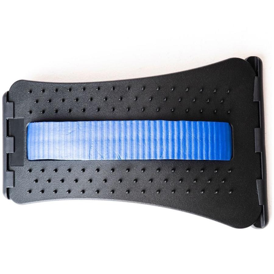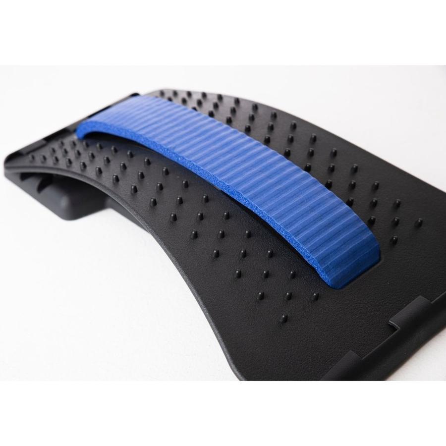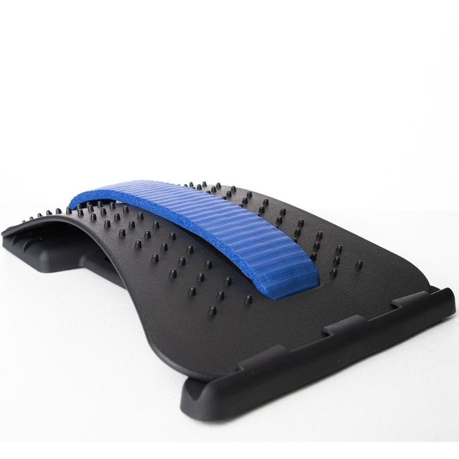 Ryggsträckare och ländryggsstöd för massage och smärtlindring i svart/blå färg.